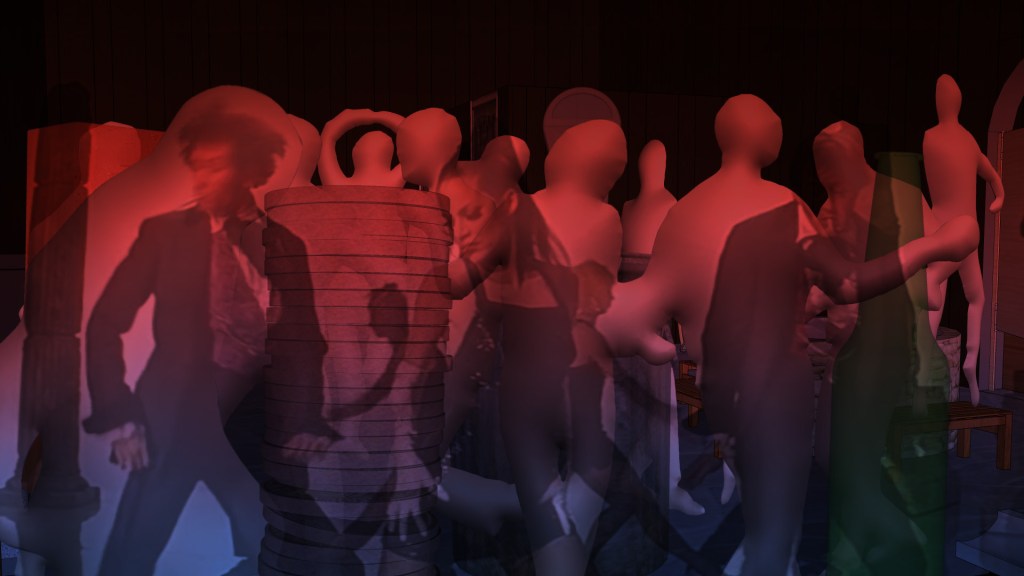 AThe impulse to daydream (causing impatience or disassociation in 1st part of video) is met with a forbidding twitch towards darkness that denies the benefit of getting lost in your mind. In the video, the navel-gazing subject travels inside and outside her body, where her navel plays host to revelers at Stonehenge and Stonewall. Uncertain histories, monumental status and ritual are teased and morphed between the two sites. The Stonewall Inn, site of the liminal 1969 Stonewall Rebellion, was a dance bar. Such places concretize dreams and consequences of queer-dom in the 20th century and beyond (see Pulse slaughter, 2016). Stonewall itself is modeled here based on first person accounts of the iconic bar, where against the full-moon early morning hours of June 28, 1969, queers raged against oppression. They threw pennies, bricks, beer bottles, a trash-can, and a parking meter. In the video they, we, and those tools of rebellion dance, affirming that past, present & future, celebration and protest, are not mutually exclusive.